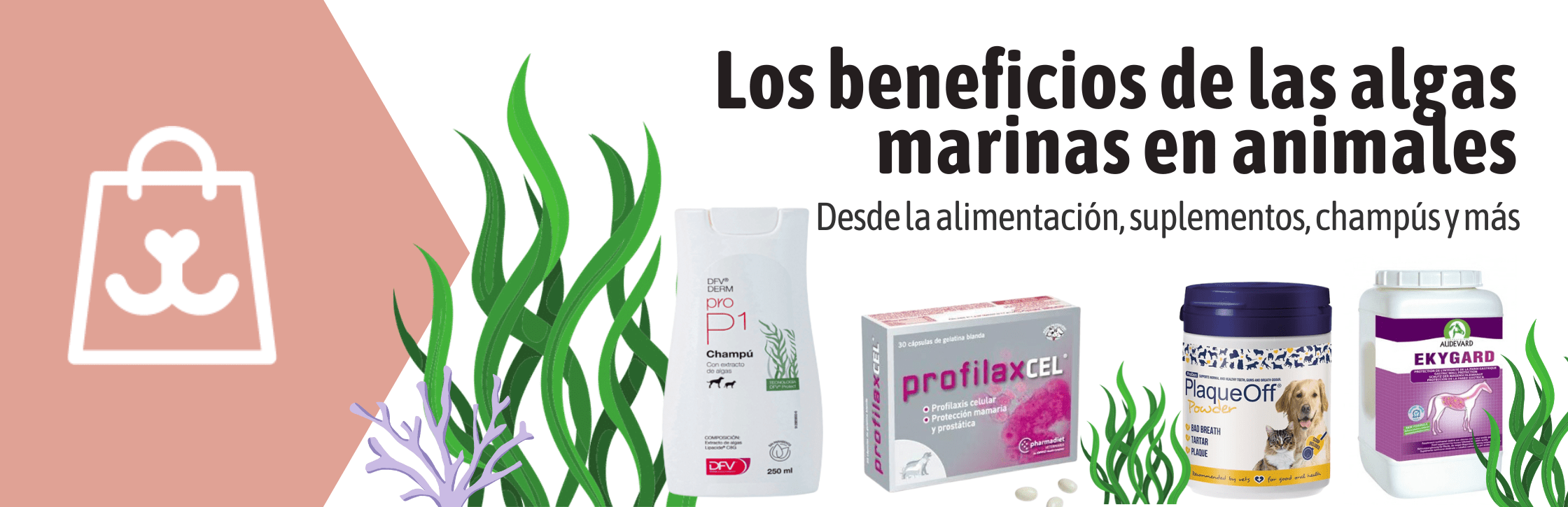 Se ha demostrado que las algas marinas previenen el desarrollo de tumores en los animales. Como el Profilaxcel 30 Cápsulas, un suplemento nutricional rico en ácidos grasos esenciales para perros y gatos que previene el desarrollo de tumores hormono-dependientes (con receptores estrógenos positivos) en mamas o próstata.