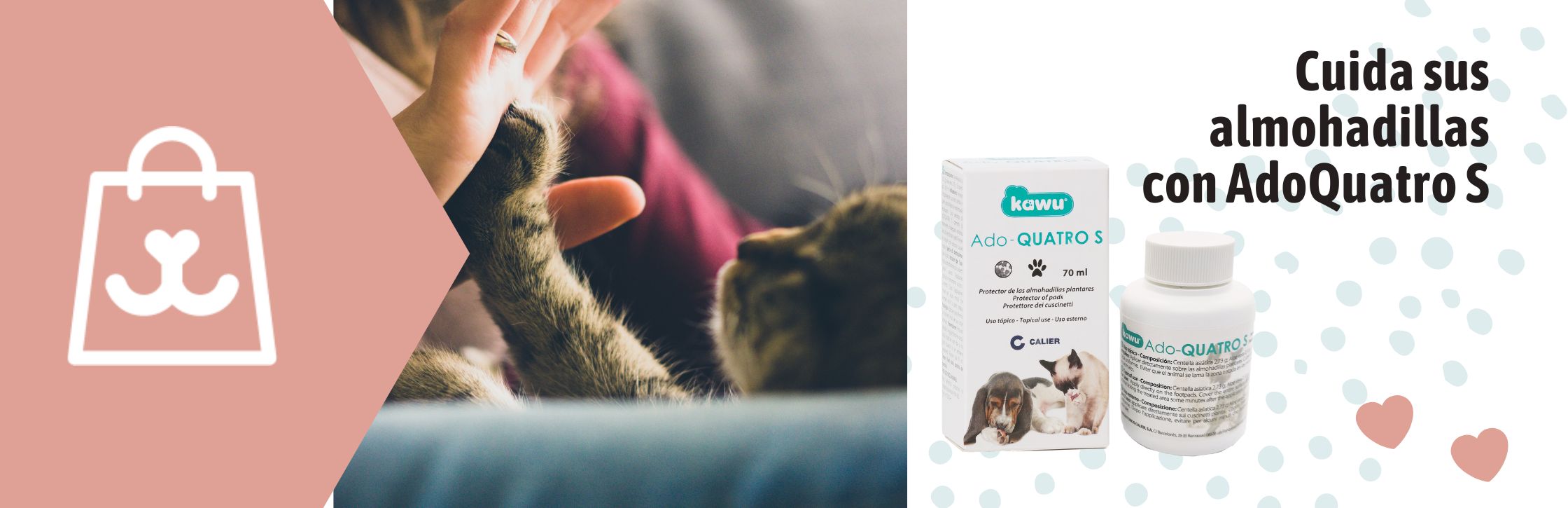 - Diario: Limpia las patas de tu mascota después de cada paseo y aplica Ado Quatro.