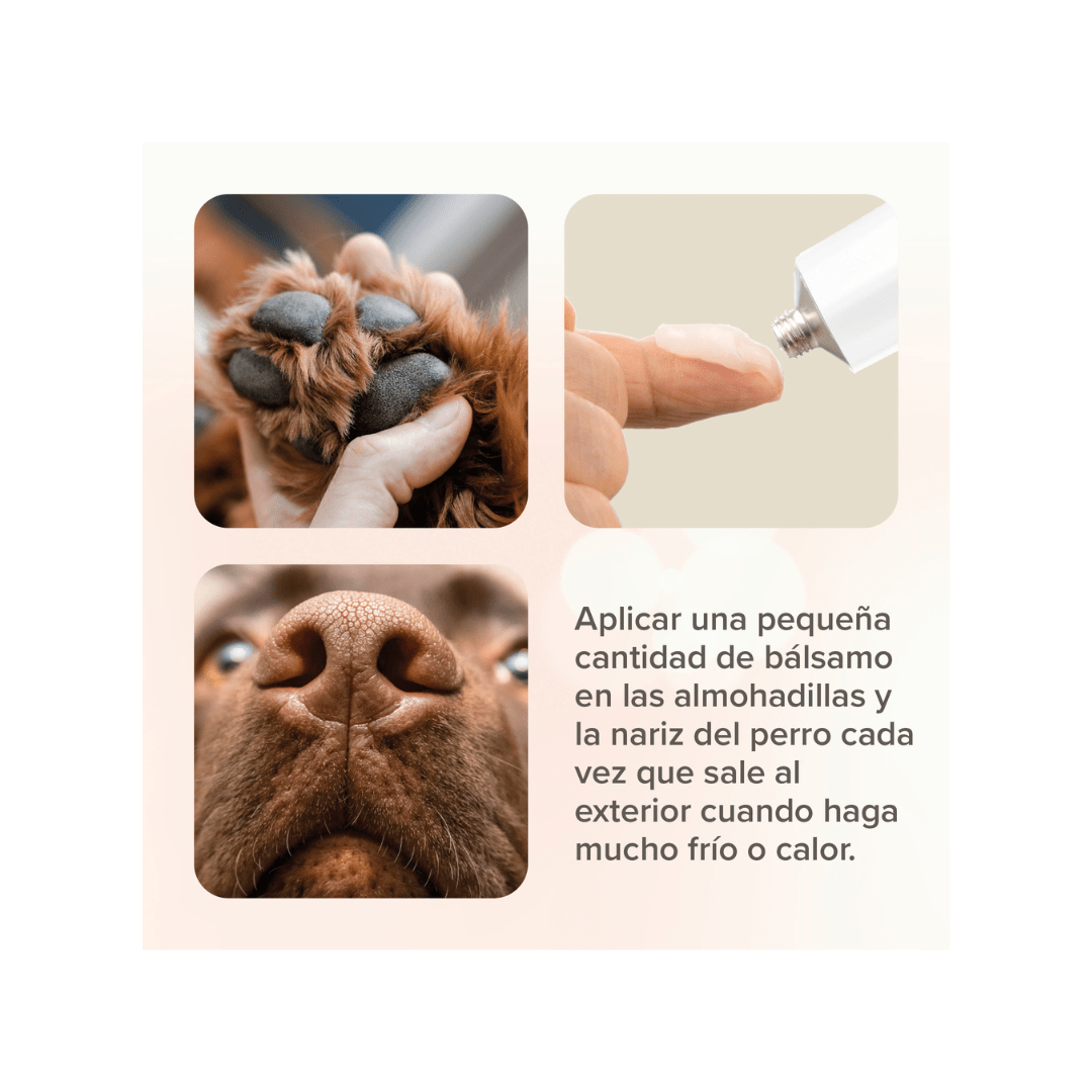 - Aplica el bálsamo a las almohadillas cada vez que tu mascota salga, o cuando salga a correr y jugar, especialmente en períodos de frío o calor extremos.