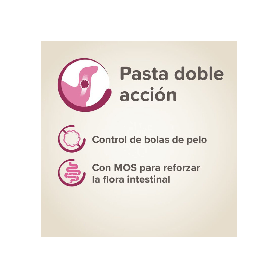 - Contiene biotina, que actúa sobre el sistema nervioso y contribuye a una piel sana y un pelo brillante. La pasta de malta ayuda a excreción de las bolas de pelo.