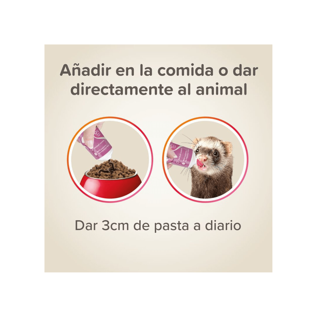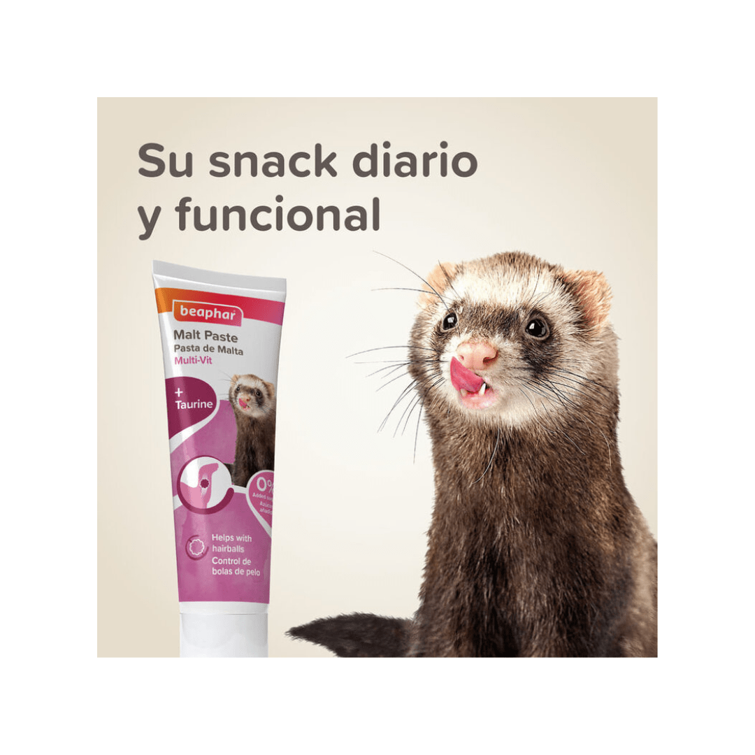 Complemento alimenticio para hurones Beaphar con una pasta de malta enriquecida con multivitaminas para reforzar sus defensas y aportar vitalidad.