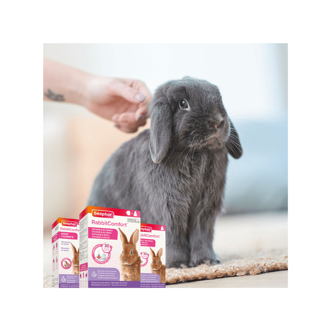El Difusor Beaphar RabbitComfort® es una solución sencilla y eficaz para reducir los problemas de comportamiento habituales en los conejos, como esconderse, comportarse de forma agresiva con las personas u otros conejos, negarse a comer o sentimientos generales de ansiedad.