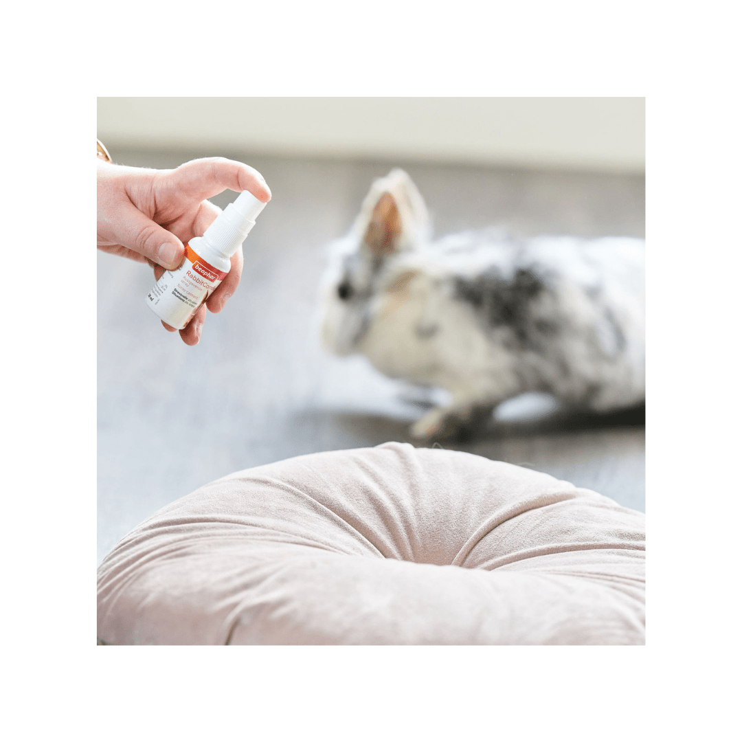 El Spray Beaphar RabbitComfort® es una solución sencilla y eficaz para reducir los problemas de comportamiento más comunes en los conejos, como esconderse, comportarse de forma agresiva hacia las personas u otros conejos, negarse a comer o sentimientos generales de ansiedad.