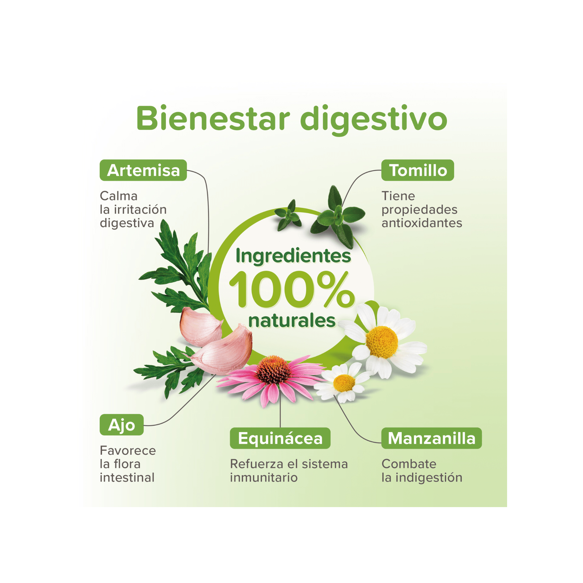 Con ajo, tomillo, salvia, manzanilla, artemisa y equinácea.