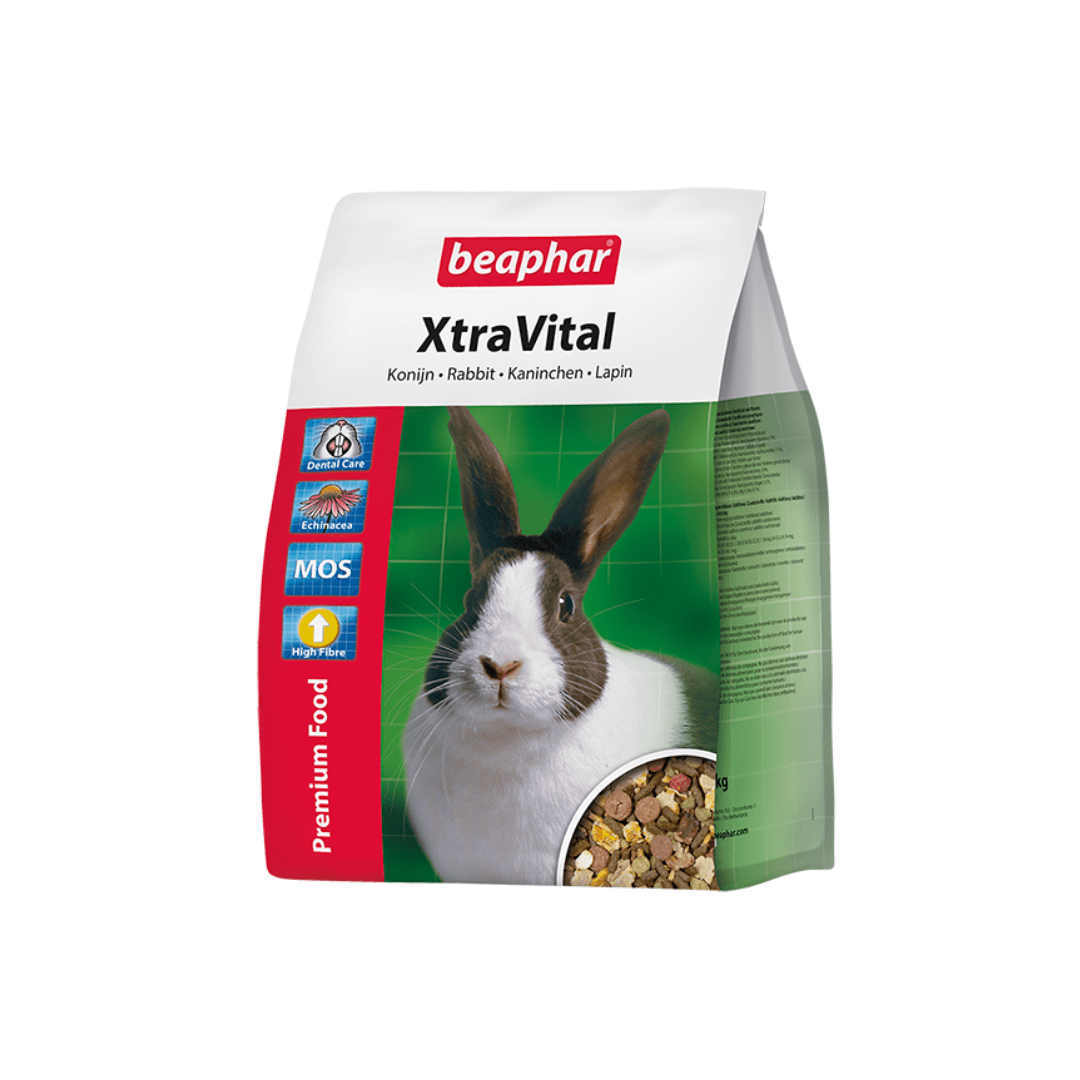 Beaphar XtraVital para conejos es un alimento de primera calidad extremadamente palatable y equilibrado. Este alimento contiene todas las vitaminas necesarias junto con minerales quelados (minerales rodeados por una capa de proteína para una buena absorción) y está adaptado a las necesidades nutricionales de los conejos. XtraVital es rico en proteínas y fibra. Además de su bajo contenido en grasas, sus crujientes ingredientes favorecen el desgaste de los dientes. La adición de heno de alfalfa extrusionado aporta vitaminas, minerales, fibra y proteínas.