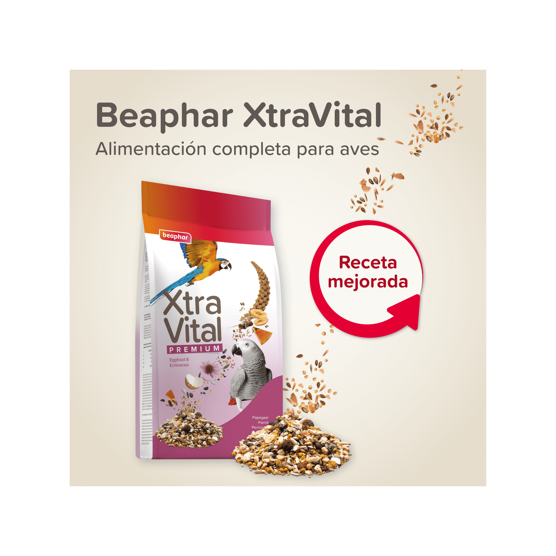 Alimento completo para loros. Beaphar XtraVital para Loros es un alimento premium, muy sabroso, con una composición variada de semillas de alta calidad, frutas, pasta de huevo (20%), vitaminas y minerales.