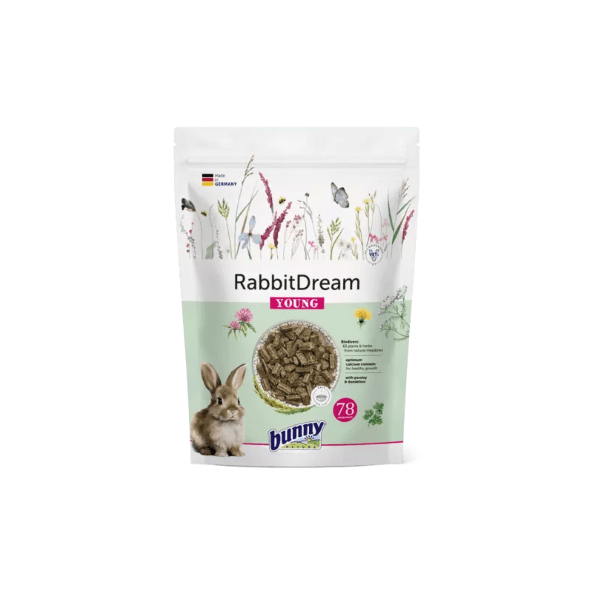 El alimento natural Sueño Básico es un pienso único para conejos enanos hasta los 6 meses de edad. Como animales herbívoros su dieta se compone de una amplia variedad de plantas verdes. Bunny Sueño Joven proporciona esta selección de alimentos con raíces, verduras y frutas.