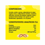 Ingredientes: cereales, aceites y grasas, subproductos vegetales, subproductos animales, extractos de proteínas vegetales, leche y derivados (incluido queso), minerales, vitaminas.