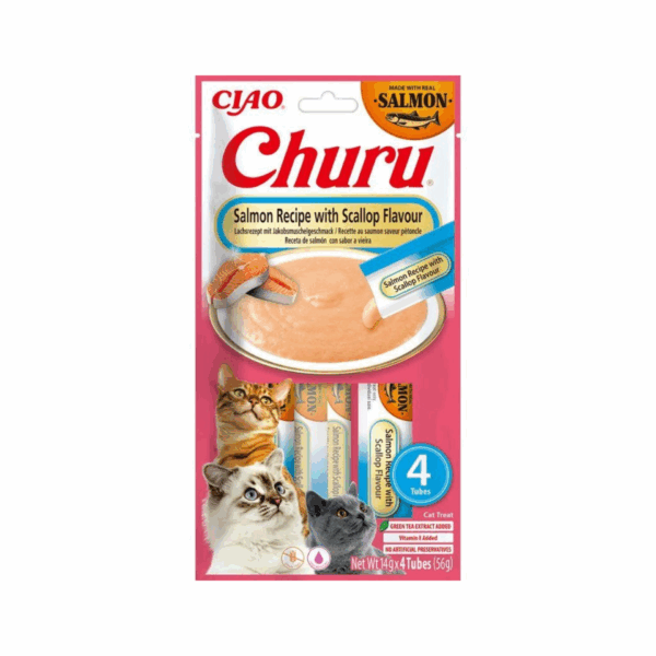 Churu Puré Receta Salmón Con Vieira Sobres Pack Ahorro 12×56 Gr Para Gatos