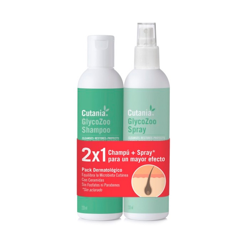 Vetnova Cutania GlycoZoo Pack es una solución limpiadora y dermatológica con acción queratolítica, lipolítica y secante en formato de champú y spray para perros, gatos y caballos.