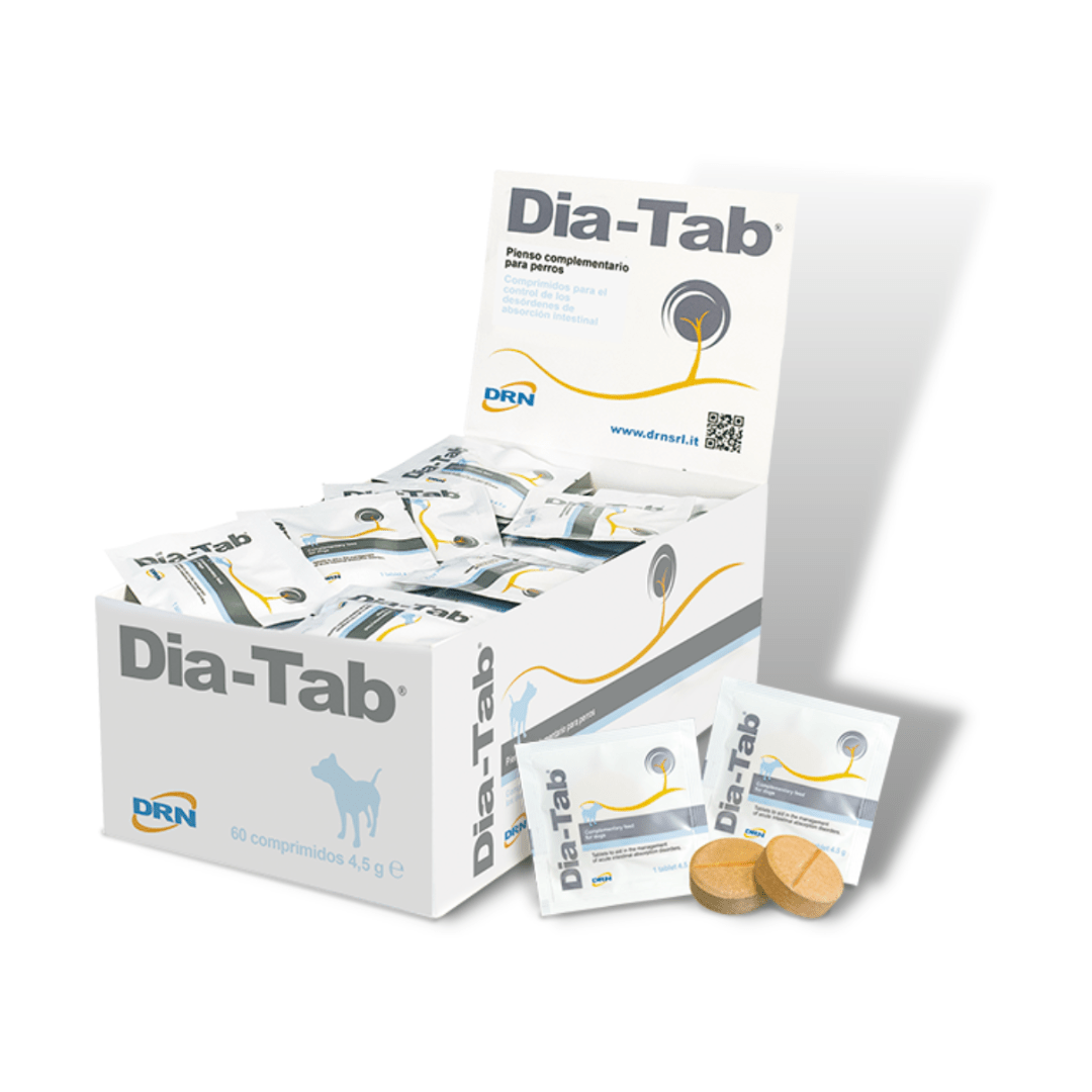 Dia-Tab ayuda a controlar de forma rápida procesos diarreicos agudos y de aparición rápida en perros, protegiendo la mucosa intestinal y contribuyendo a restaurar el balance electrolítico.