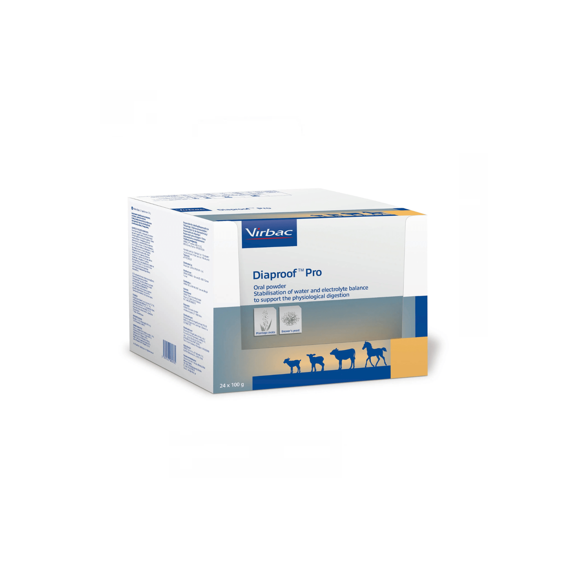 - La formulación original, a base de Plantago ovata, forma un gel protector en los intestinos. Además de participar en la rehidratación, el alimento complementario DIAPROOF® PRO también contribuye a la formación de una barrera que reduce la pérdida de agua y regula el tránsito intestinal.