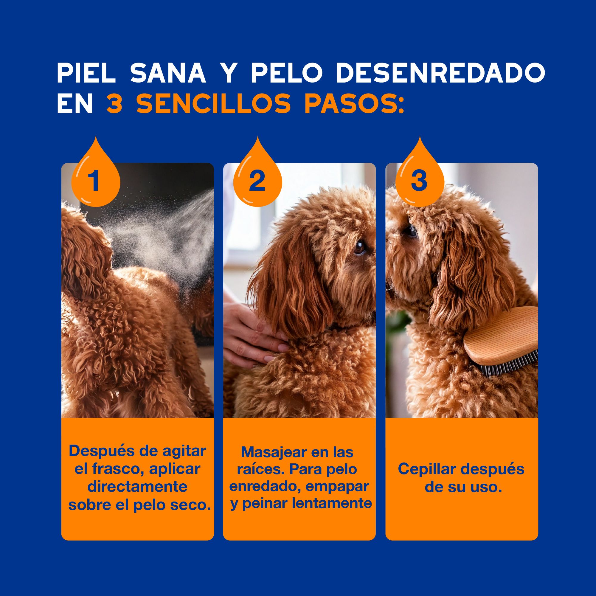 Textura ligera, ideal para aplicarlo sobre el pelaje seco