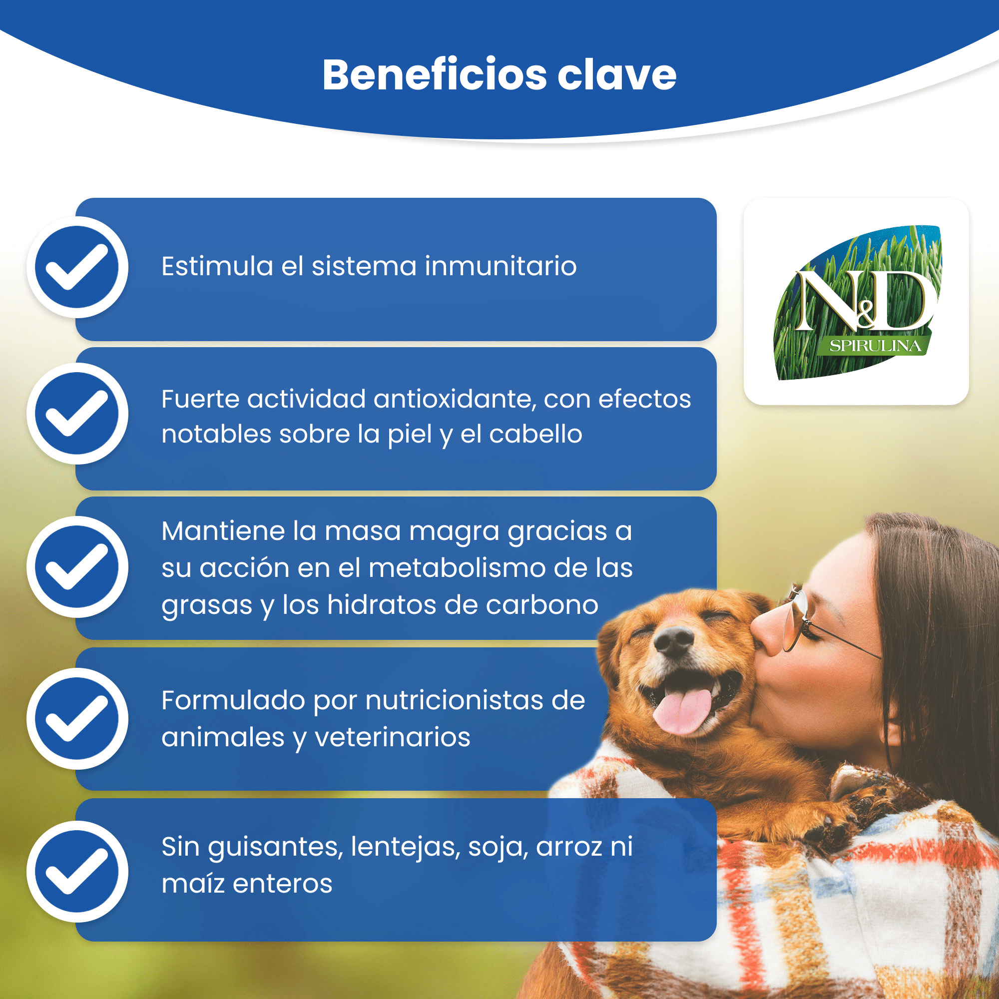 Farmina N&D Functional Espirulina & Arenque para perros medianos y grandes es un alimento seco completo que combina ingredientes naturales de alta calidad con espirulina, un superalimento rico en proteínas, antioxidantes y nutrientes funcionales. Está especialmente diseñado para reforzar el bienestar general de tu perro, con énfasis en la salud de la piel, digestión, sistema inmunitario y movilidad articular.