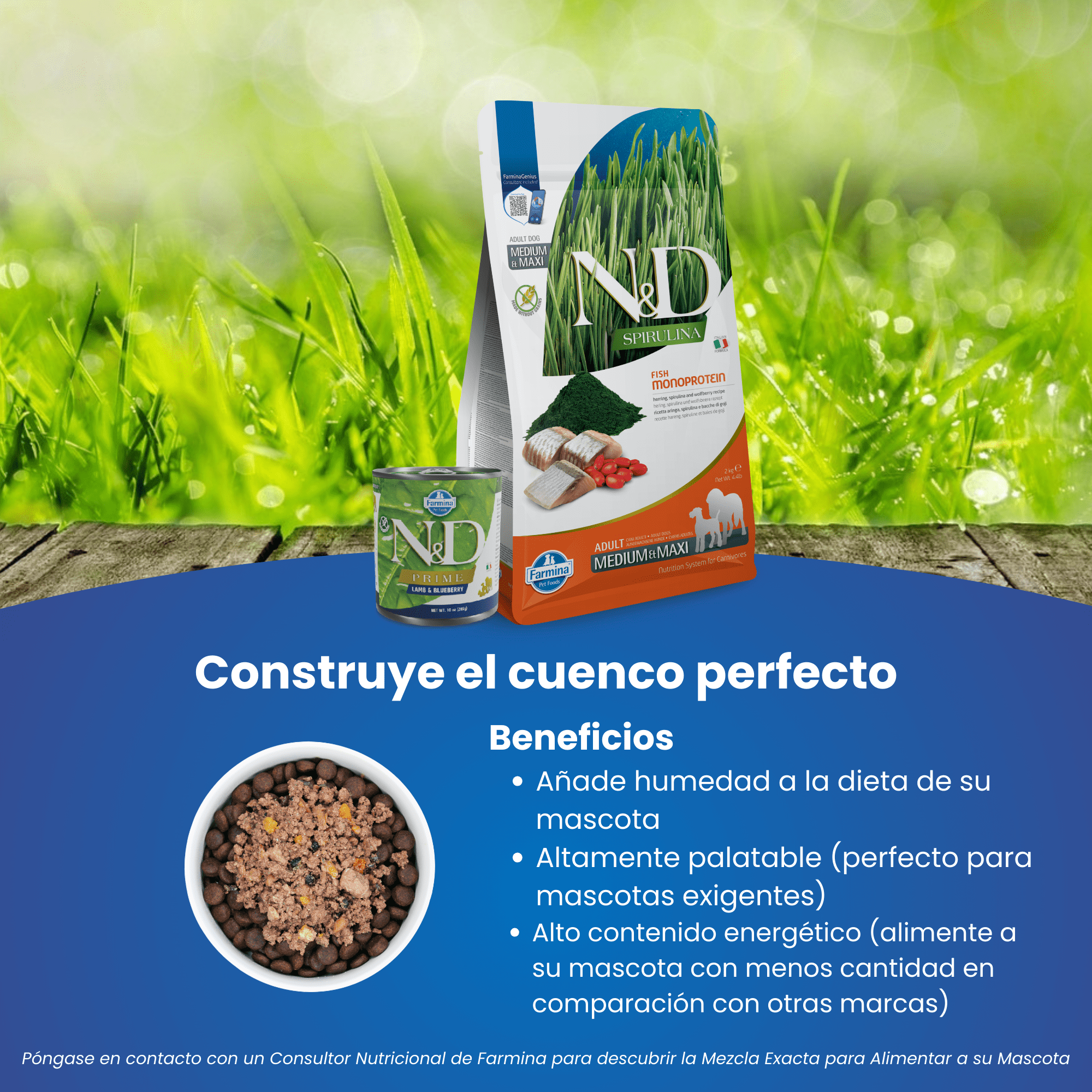 - Farmina N&D Functional con espirulina y arenque, pienso funcional para perros adultos medianos y grandes.
