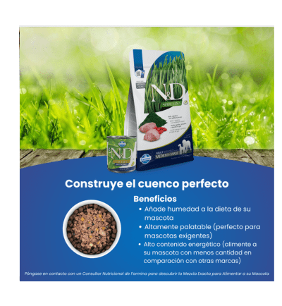 Farmina N&D Pienso Espirulina Y Cordero Para Perros Cachorros Razas Mini 2 Kg