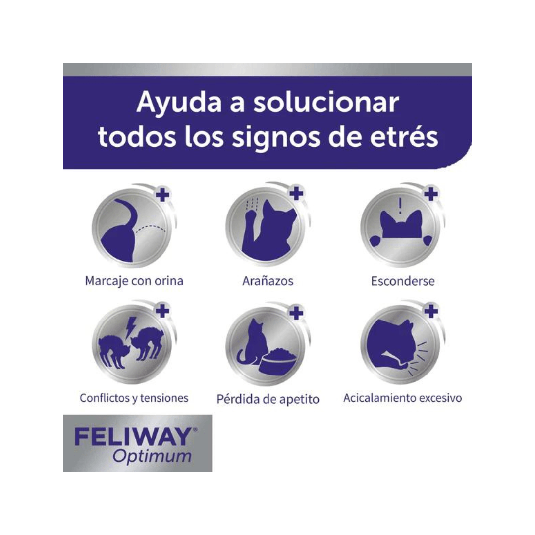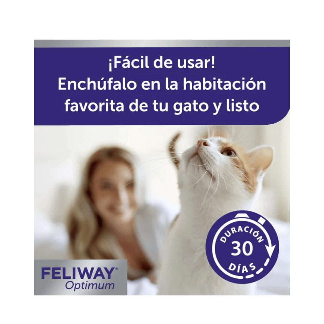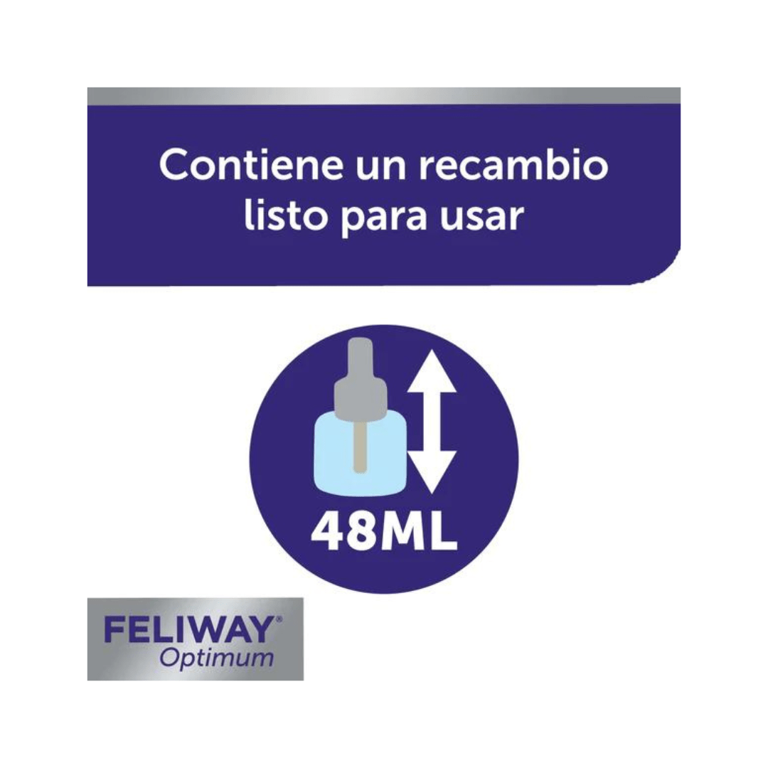 - FELIWAY Optimum Recambio funciona con FELIWAY Optimum Difusor.