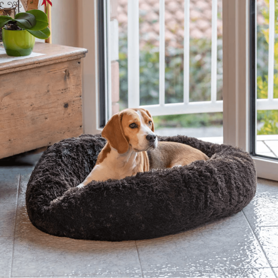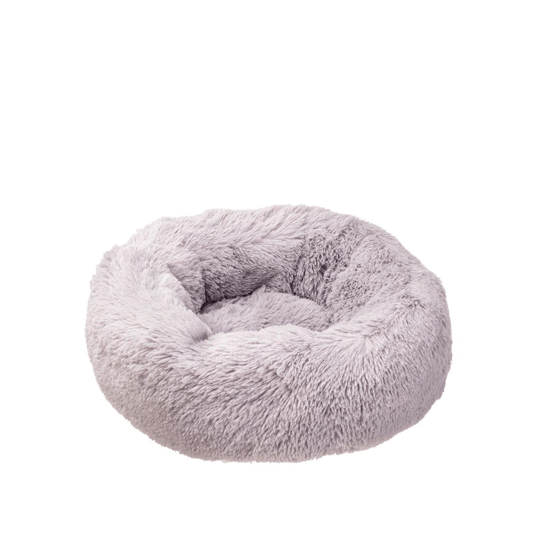 La cama Cuddly para perros y gatos asegurará dulces siestas para tu amigo en cualquier momento del día. El cojín, fabricado en pelo ecológico cálido y extrasuave, muy confortable, está diseñado para ofrecer una mayor protección especialmente durante los meses de invierno. Cuenta con acolchado grueso y un borde alto para ofrecer soporte para la cabeza y el cuello. La forma redonda de donut envuelve a tu perro o gato y le permite acurrucarse en su interior, brindándole protección y seguridad al animal, convirtiéndose así también en un útil antiestrés.