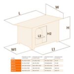 - Dimensiones internas son (L = longitud, W = profundidad, H = altura interior máxima):