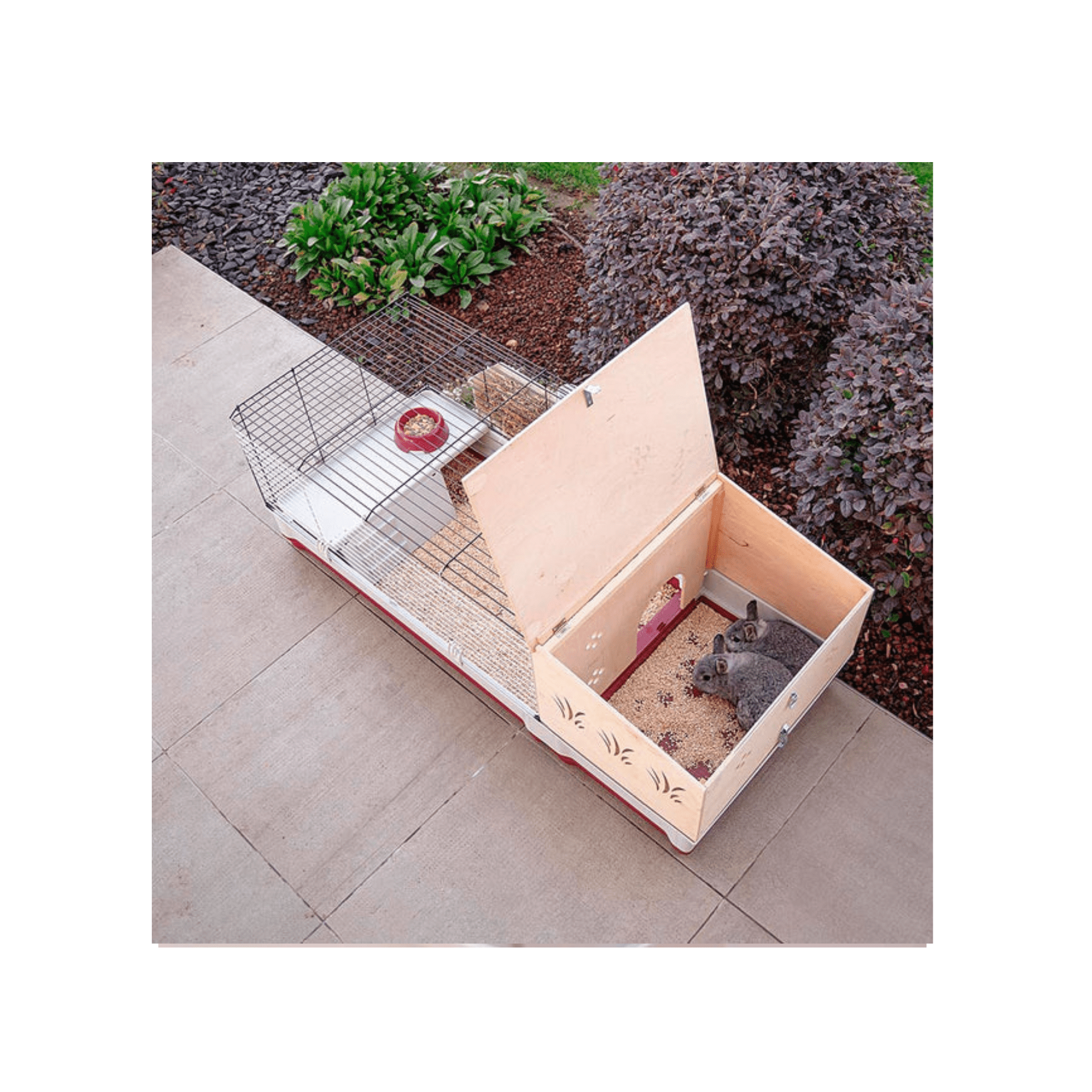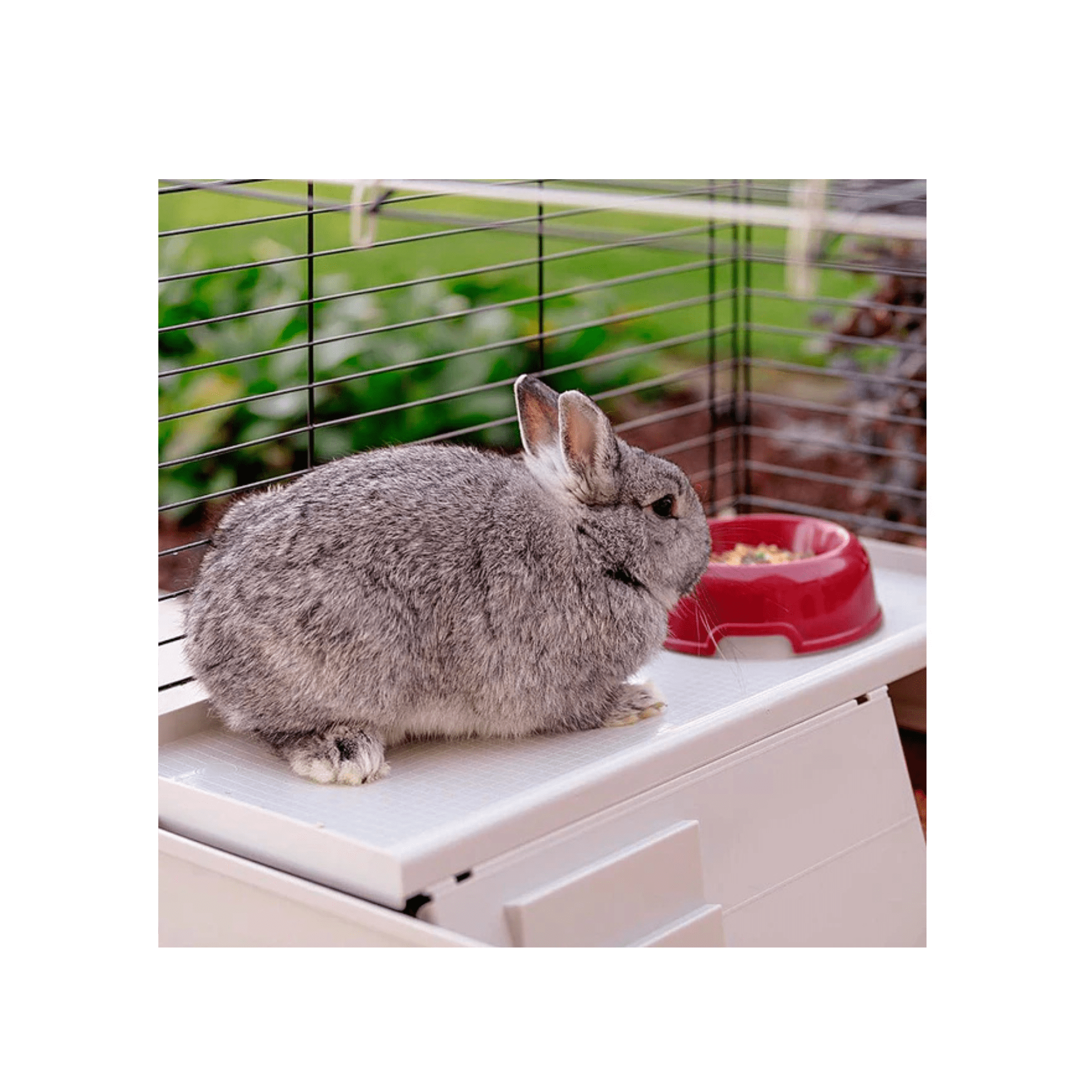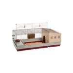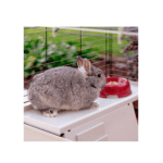 En el interior del Krolik 140 Plus se encuentran todos los accesorios para el confort de su pequeño amigo, como una caseta de plástico con repisa y tabique con escalones, cuenco para comida, comedero para heno y un bebedero. Para facilitar el mantenimiento diario, la puerta frontal puede alzarse del todo, mientras que para una limpieza más profunda se puede separar el fondo gracias a unos cómodos ganchos. Fáciles de abrir, los ganchos de fijación son totalmente seguros, pues su diseño impide que el conejo los abra.