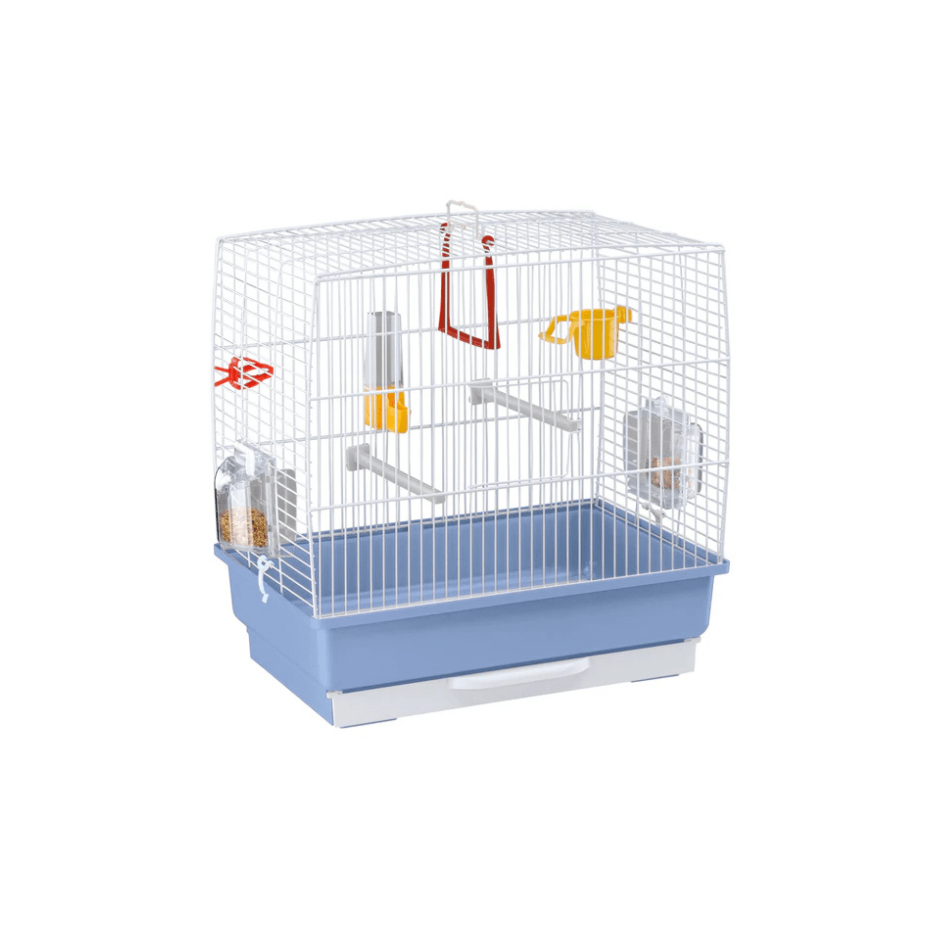 Se trata de una jaula muy versátil y fácil de manipular gracias al asa de la parte superior, pero también incluye botellas, toboganes de plástico, cazuelas de pastelería, columpios y alicates para alimentos. Todo lo básico para criar a tus hermosas aves de compañía.