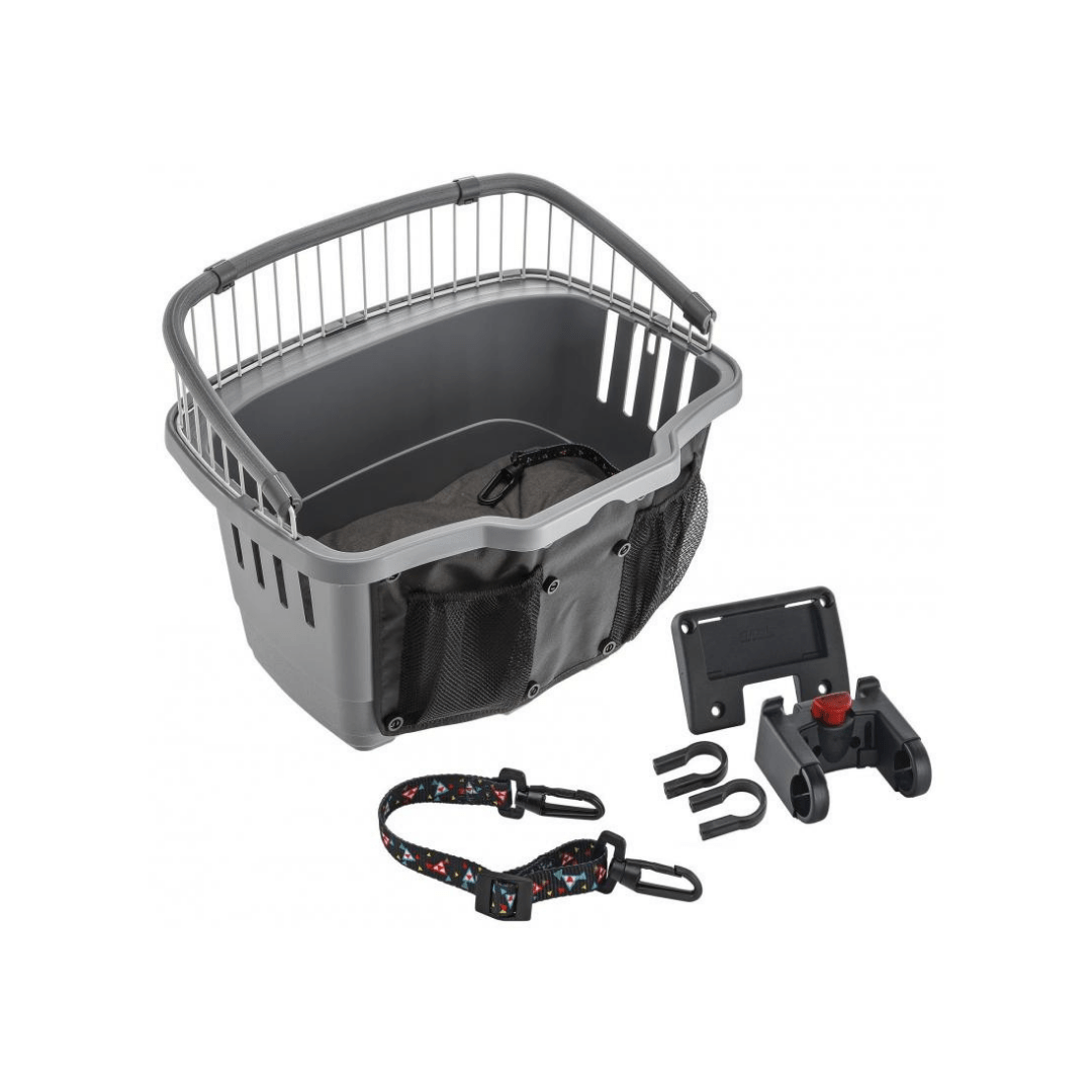 Atlas Bike Rapid esta hecha de un plástico ligero y resistente, y esta equipada con todos los sistemas para que sea cómodo y seguro: reja de acero cubierta de plástico, soporte frontal para las patas de tu perro, y una cinta de seguridad para atar el collar o la correa y evitar perdidas de equilibrio mientras pedaleas. Además cuenta con dos útiles bolsillos externos para poder guardar tus llaves, el teléfono o las galletas favoritas de tu perro. También cuenta con un cómodo cojín de algodón incluido en el paquete.