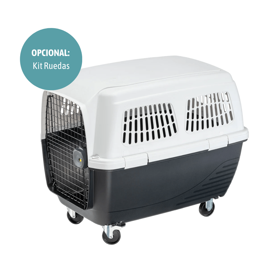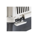 Sólidos y robustos, están fabricados en resina termoplástica y equipados con una puerta de acero plastificado con malla para mayor seguridad. Los transportines están equipados con un bloqueo bidireccional extremadamente fiable, que evita desagradables aperturas accidentales durante el viaje. Al girar el pomo, se activan de hecho dos puntos de fijación que anclan la puerta a la estructura principal del transportín para mascotas. Las grandes ranuras laterales aseguran el paso del aire para un ambiente bien ventilado para su mascota.