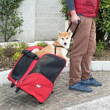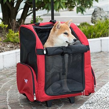 Entre los accesorios pensados para viajar, Ferplast ha diseñado este cómodo trolley, disponible en diferentes tamaños: el modelo pequeño mide 32 x 28 x h 51 cm y está indicado para gatos y perros pequeños mientras que el modelo grande mide 44 x 37 x h 60 cm y está indicado para perros de talla pequeña. El transportín fabricado con nailon resistente está dotado con un asa telescópica que se puede alargar y regular gracias al cómodo pulsador central. Dispone de correas para utilizarlo como una mochila, pero, gracias a sus ruedas, puede ser fácilmente arrastrado; además, posee unos sólidos pies de apoyo.