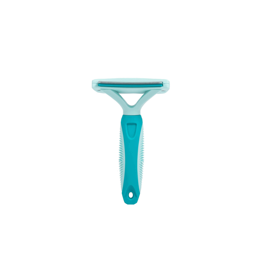 Ideal para las temporadas de muda, este deslanador está diseñado para eliminar eficientemente el pelo muerto y suelto, evitando que se acumule en el pelaje de tu mascota o en tu hogar.