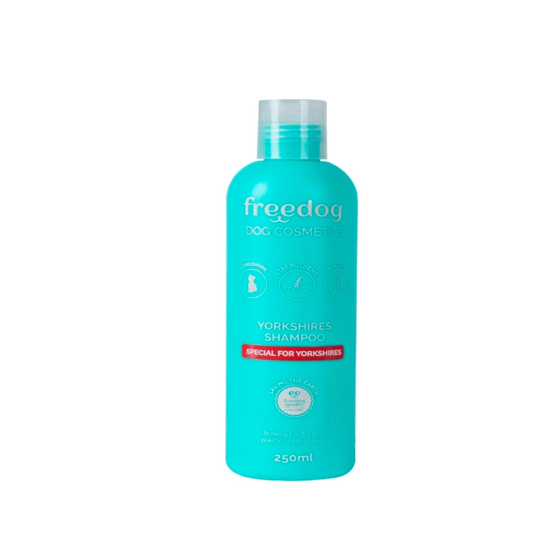 El Freedog Champú Yorkshire 250 ml ha sido desarrollado específicamente para cuidar y embellecer el pelo largo, fino y delicado de razas como el Yorkshire Terrier. Su fórmula nutritiva limpia con suavidad y deja el pelaje brillante, suelto y fácil de peinar.