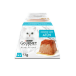 Las Mousse Gourmet Revelation están disponibles en varios sabores como pollo, buey, salmón y atún para que tu gato pueda disfrutar de uno diferente cada día. El formato pirámide de mousse de carne y la cascada de salsa que cae por encima, satisfacerá incluso a los paladares más exquisitos.
