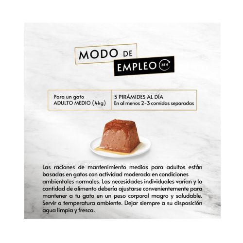 Un alimento elaborado con ingredientes de alta calidad y con mucha carne para satisfacer la naturaleza carnívora de los felinos. Rico en proteínas, vitaminas y minerales para cubrir las necesidades nutricionales diarias de tu gato. Las recetas de Gourmet Revelations Mousse son 100% completas y equilibradas, por lo que no tendrás que preocuparte por nada.
