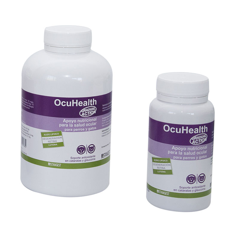 Composición: Taurina, Ascorbato de sodio (Vitamina C), Citrus sinensis (bioflavonoides de naranja), Ácido lipoico, Arándano, Quelato de zinc de metionina, Vitis vinifera (Semilla de uva), Harina de Marigold (Luteína), L-Seleniometionina, Excipientes c.s.p