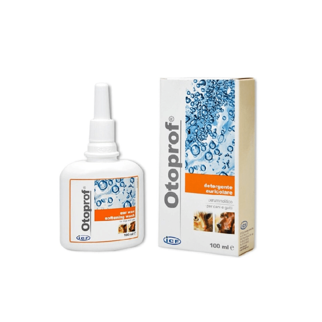Otoprof es una solución auricular para el lavado auricular de perros y gatos en todas las situaciones de exceso de cerumen (atopia, alergia, otitis, exceso de suciedad).