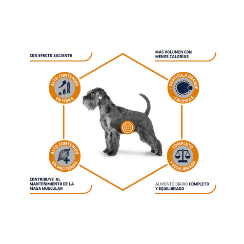 Especialmente formulado para perros con problemas de sobrepeso, con un bajo nivel de materias grasas para reducir las calorías.