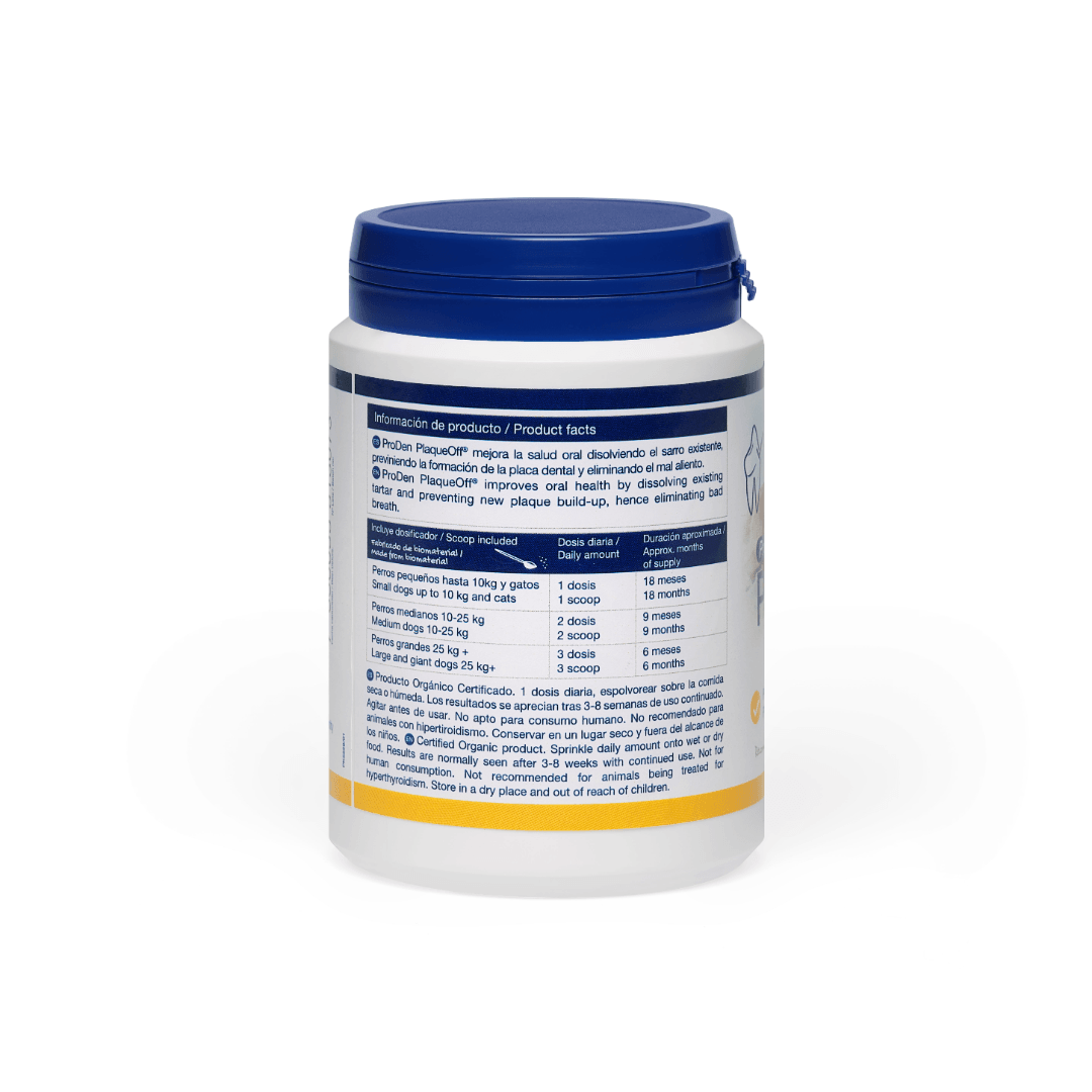 El ingrediente base de este dentífrico en polvo es una alga especial que ha sido enriquecida y pulverizada PlaqueOff en un preparado natural. Este producto se desarrolló y testó originariamente para seres humanos antes de que se comprobara su eficacia en animales.
