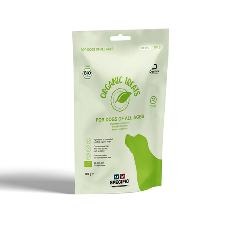 Las golosinas orgánicas SPECIFIC son deliciosas golosinas orgánicas para perros de todas las edades.