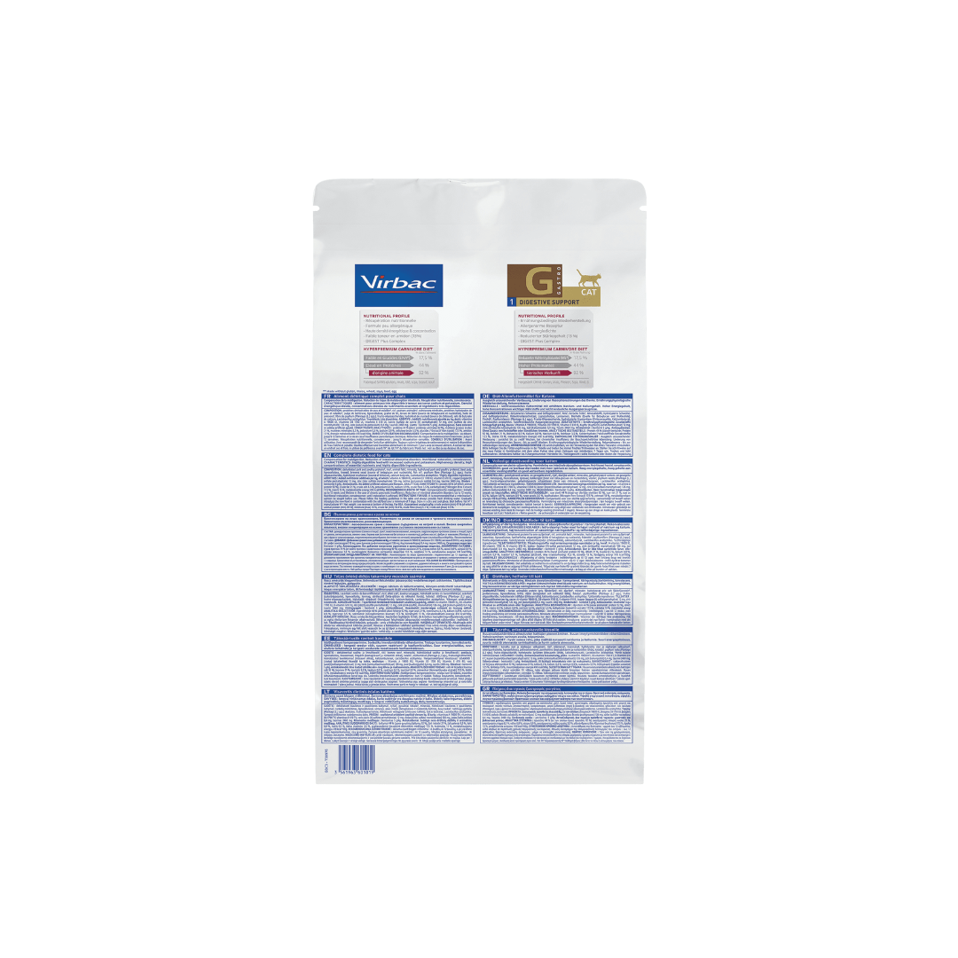 El pienso G1 Gastro Digestive Support de Virbac cuenta con una dieta baja en hidratos de carbono y rica en proteínas, con un 44% de proteína, de la cual un 92% es de origen animal.