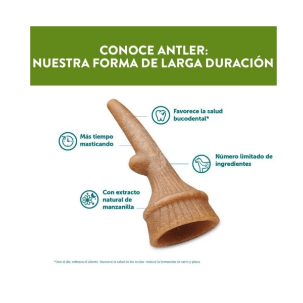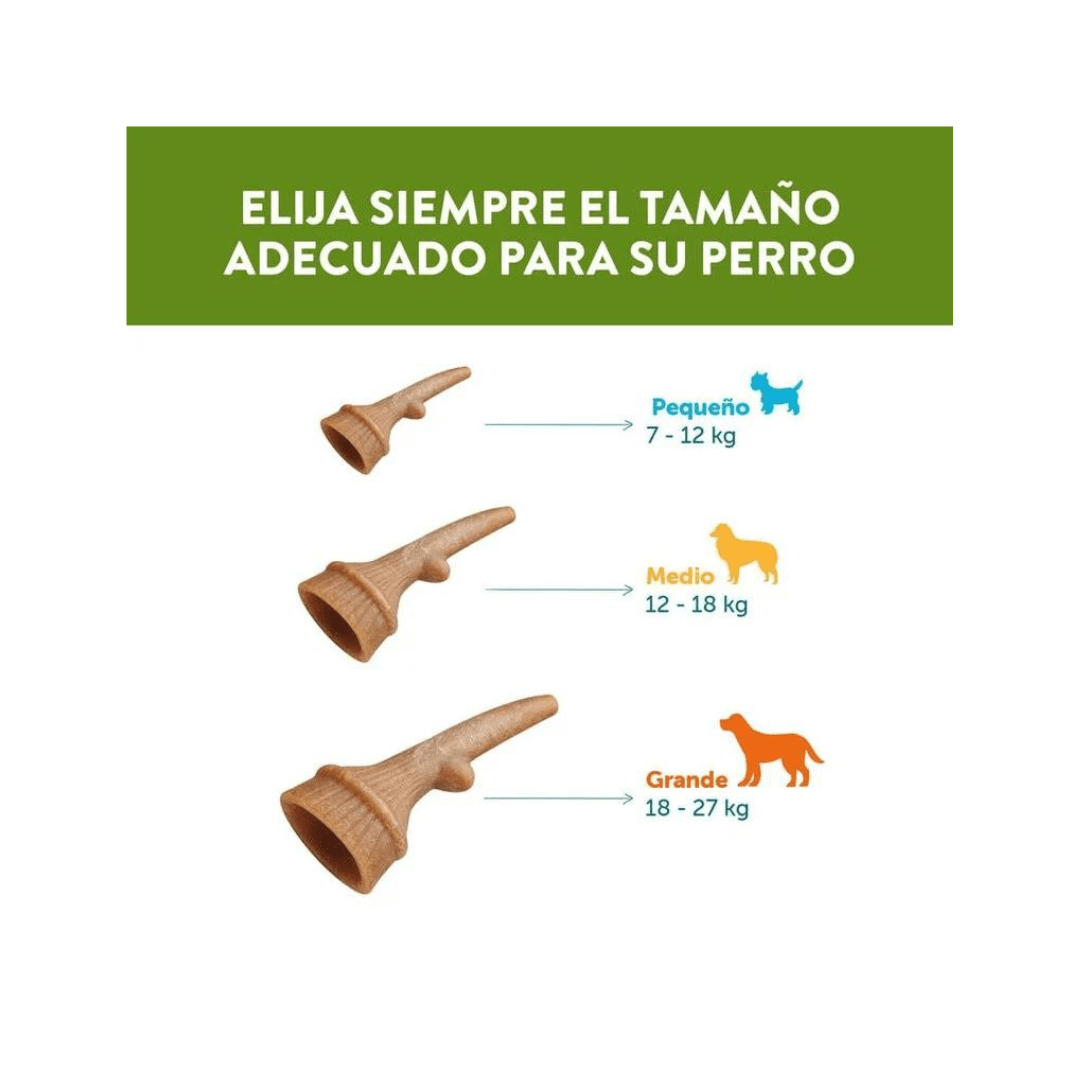Premios en forma de asta, hipoalergénicos, naturales y sin gluten para perros de razas pequeñas.