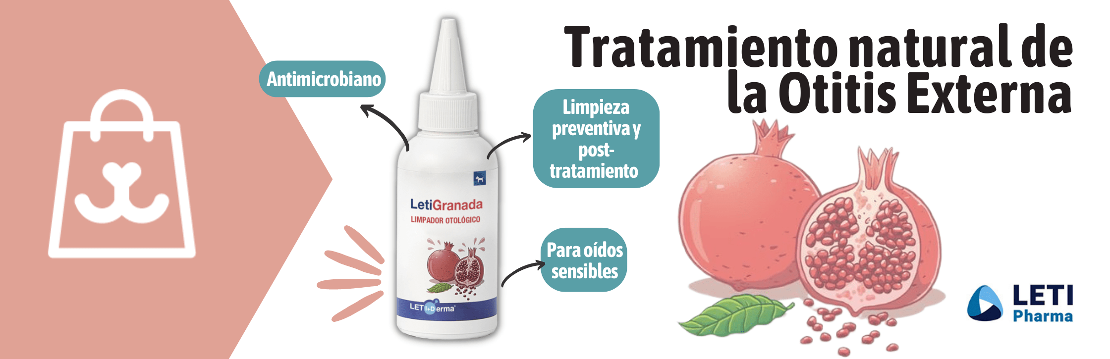 El limpiador ótico LetiGranada, de LETIPharma, está indicado para la limpieza rutinaria de los oídos sanos con predisposición a presentar sobrecrecimiento bacteriano y/o por levaduras (principal problema de las otitis inflamatorias). Se ha formulado a base de extracto de granada, componente natural que contiene punicalaginas con una elevada actividad antimicrobiana.